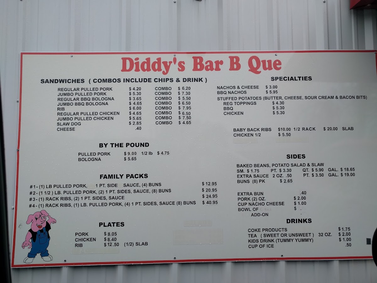 Introducing the menu at Diddy's Bar-B-Q, located in Jackson, TN, offers a mouth-watering array of options that truly reflect their commitment to quality. At Diddy's, you'll find a variety of delectable choices, from pulled pork and bologna served by the pound to classic favorites like chicken, corn dogs, and hot dogs. The drink selection includes refreshing Coke products and their renowned sweet tea, which many consider a must-try. Customers rave about the flavors, with one reviewer noting the "top-tier" quality of offerings like burgers and hearty stew. The atmosphere enhances the dining experience, creating a welcoming vibe for all. Whether you’re stopping by for their Friday special or a casual bite any day, Diddy's Bar-B-Q consistently delivers on taste and warmth. It's a haven for BBQ lovers and a culinary gem in Jackson!